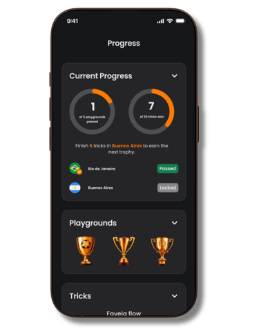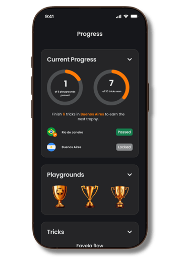 Um aplicativo de treino de freestyle inspirado no ritmo, na criatividade e na alegria de jogar do Ronaldinho. Aprenda novas habilidades, desbloqueie desafios e evolua no seu tempo — onde estiver.